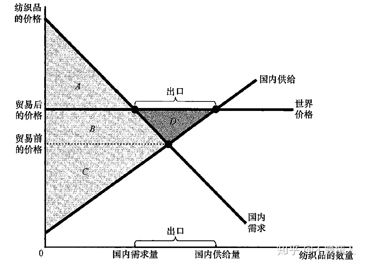 如果进行世界贸易,是成为纺织品的进口国还是出口国?(是卖还是买),和世界价格比较?