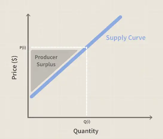 生产者剩余:买者出售一种物品得到的量 减去 其生产成本